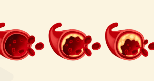 - Placas de gordura ao longo dos vasos sanguíneos.