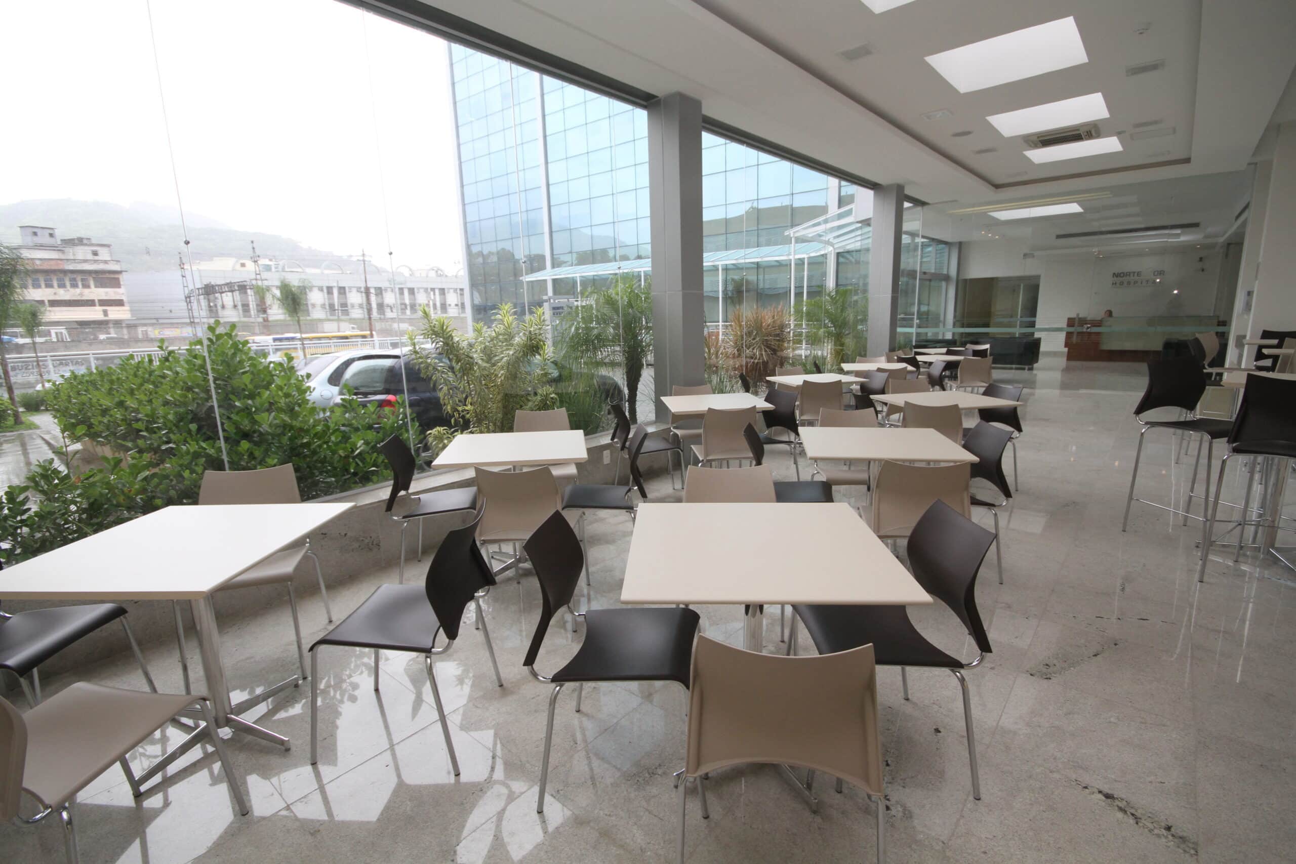 A Cafeteria funciona diariamente, das 7h às 22h, oferecendo café da manhã, almoço, jantar e lanches.