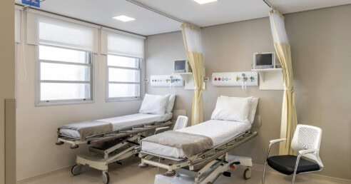 Possuimos quinze leitos em quartos individuais, permitindo a presença de acompanhantes e proporcionando maior privacidade e conforto.