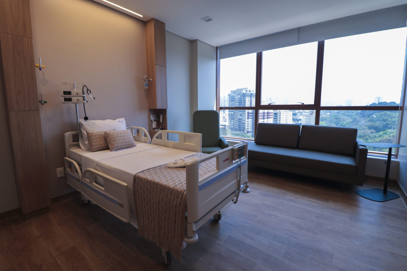 Nossas acomodações foram cuidadosamente preparadas para proporcionar acolhimento e tranquilidade a quem necessita de atenção especial. Equipadas com frigobar, poltrona confortável para acompanhantes e enxoval exclusivo, elas também contam com luz natural, criando um ambiente agradável e aconchegante.