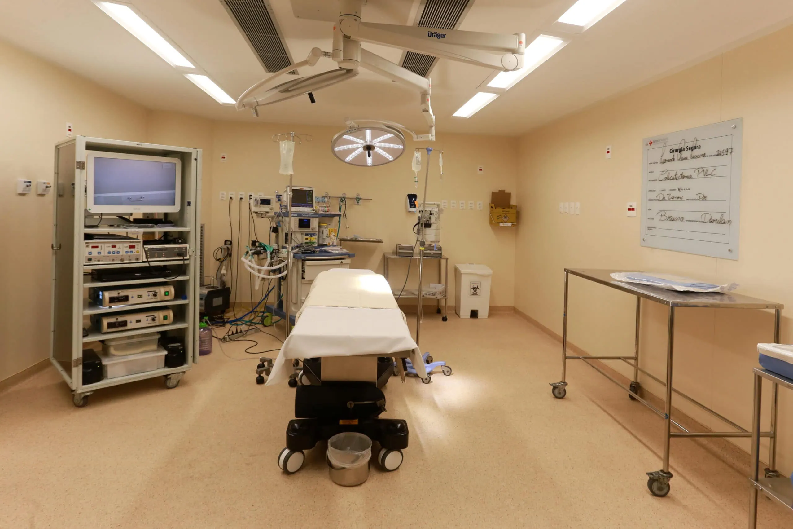 Capacidade para 2.400 cirurgias por ano, com suporte de 4 leitos de recuperação pós-anestesia, monitorização 24h e equipes multidisciplinares.
