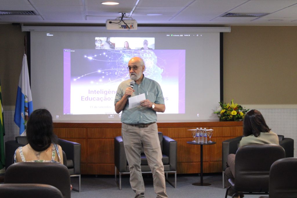 Durante a sessão, os palestrantes abordaram sobre avanços da tecnologia e como a IA está impactando diversos setores, como a educação. A mesa redonda trouxe um debate sobre as práticas pedagógicas, suas implicações, benefícios, os obstáculos a serem superados nesse processo de transformação a nível nacional e de acordo com a realidade brasileira.