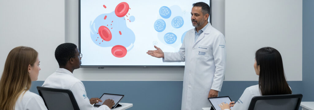 Como hematologista, você poderá trabalhar em hospitais terciários, laboratórios de referência e clínicas especializadas, lidando com casos complexos e uso de tecnologia de ponta.