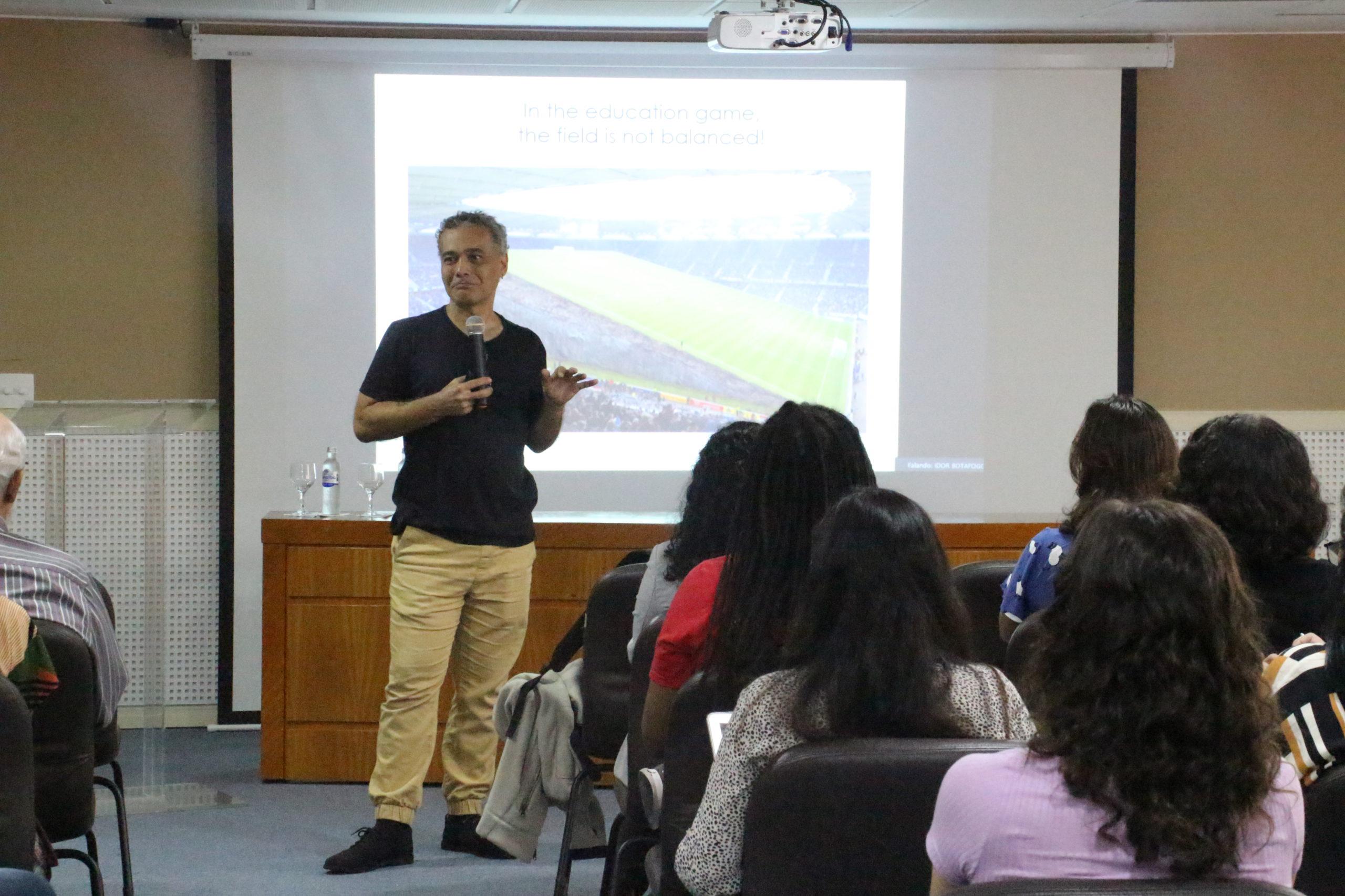 Dr. Orbach apresentou as condições do ensino à distância durante a pandemia, onde ocorreram desigualdades educacionais. Ele destacou a importância de desenvolver um modelo de ensino digital bem estruturado e estável, além de igualitário para que todas as crianças tenham acesso as mesmas oportunidades.