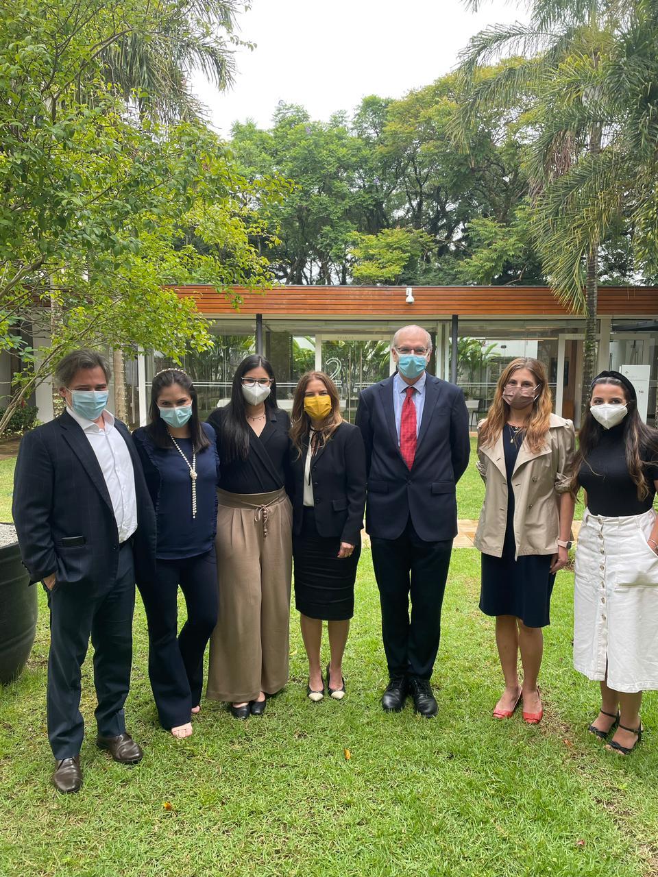 Dr. Claudio Ferrari, Natália Salvador, Mayara Fraga, Dra. Sue Ann Costa Clemens, Dra. Fernanda Tovar-Moll e Ingrid Barbosa na Unidade IDOR em São Paulo.