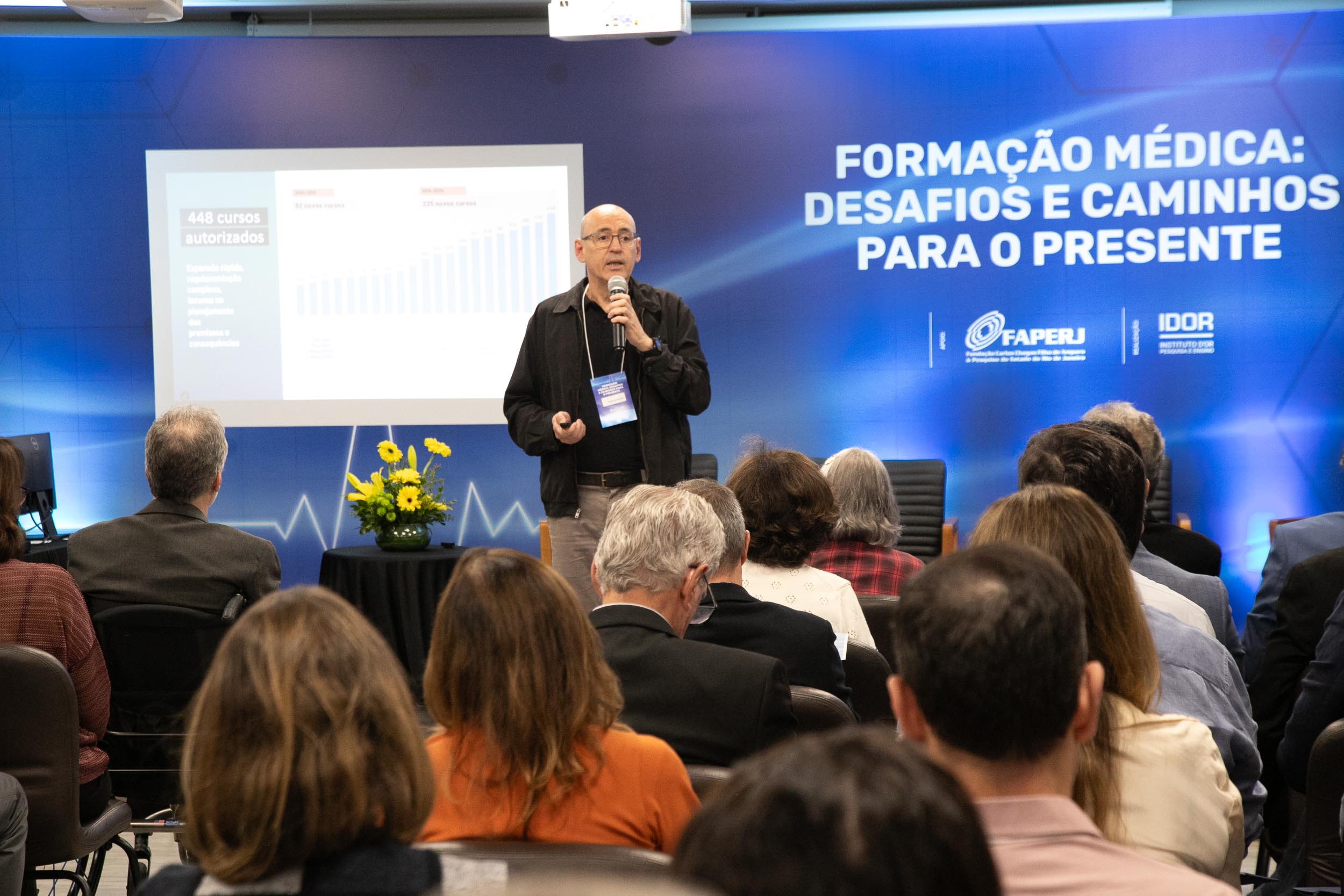 Nos dias 13 e 14 de junho de 2025, o Instituto D’Or de Pesquisa e Ensino (IDOR), com apoio da FAPERJ, sediou no Rio de Janeiro o ciclo de debates “Formação Médica: Desafios e Caminhos para o Presente”. O encontro teve como objetivo central refletir sobre soluções estruturais para a melhoria da qualidade da formação médica no Brasil, reunindo lideranças do Ministério da Educação, Ministério da Saúde, secretaria municipal de saúde, universidades públicas e particulares, associações profissionais e estudantes. Estiveram presentes mais de 150 convidados, estando na plateia reitores e dirigentes das principais escolas médicas do estado do Rio de Janeiro, compondo uma audiência qualificada e ativa.