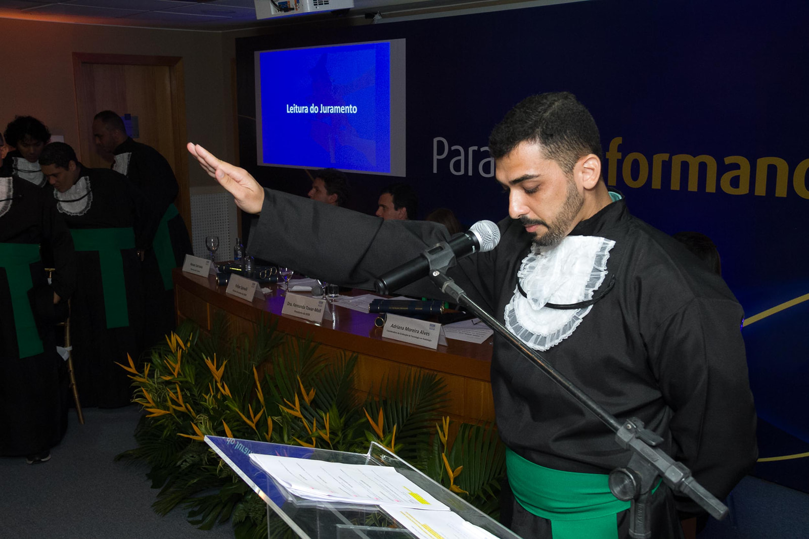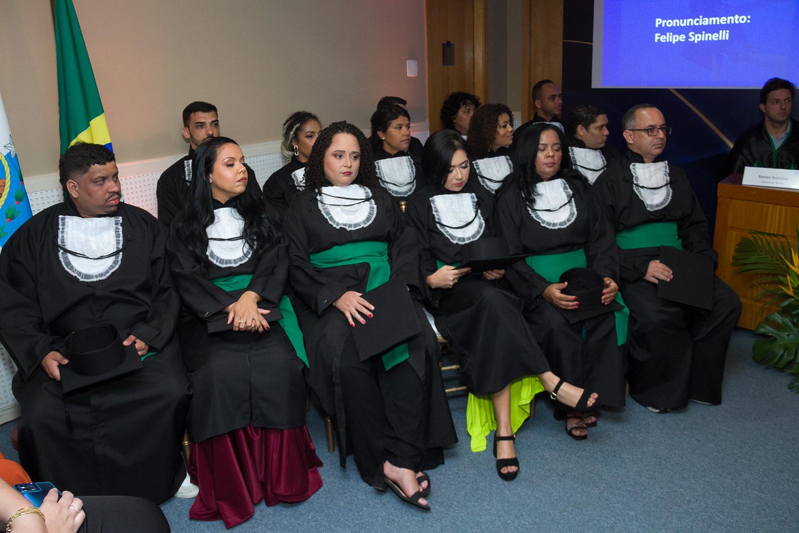 O formando Rodrigo Valentini discursou para as famílias presentes, expressando gratidão e reconhecimento pelo apoio ao longo da jornada acadêmica. Destacamos também a participação de Albaniza Fernanda, a oradora da turma, cujas palavras inspiradoras refletiram a determinação e o esforço de todos os formandos.Por fim, Nathan Loureiro realizou o juramento, comprometendo-se solenemente com os princípios éticos e profissionais da área escolhida.