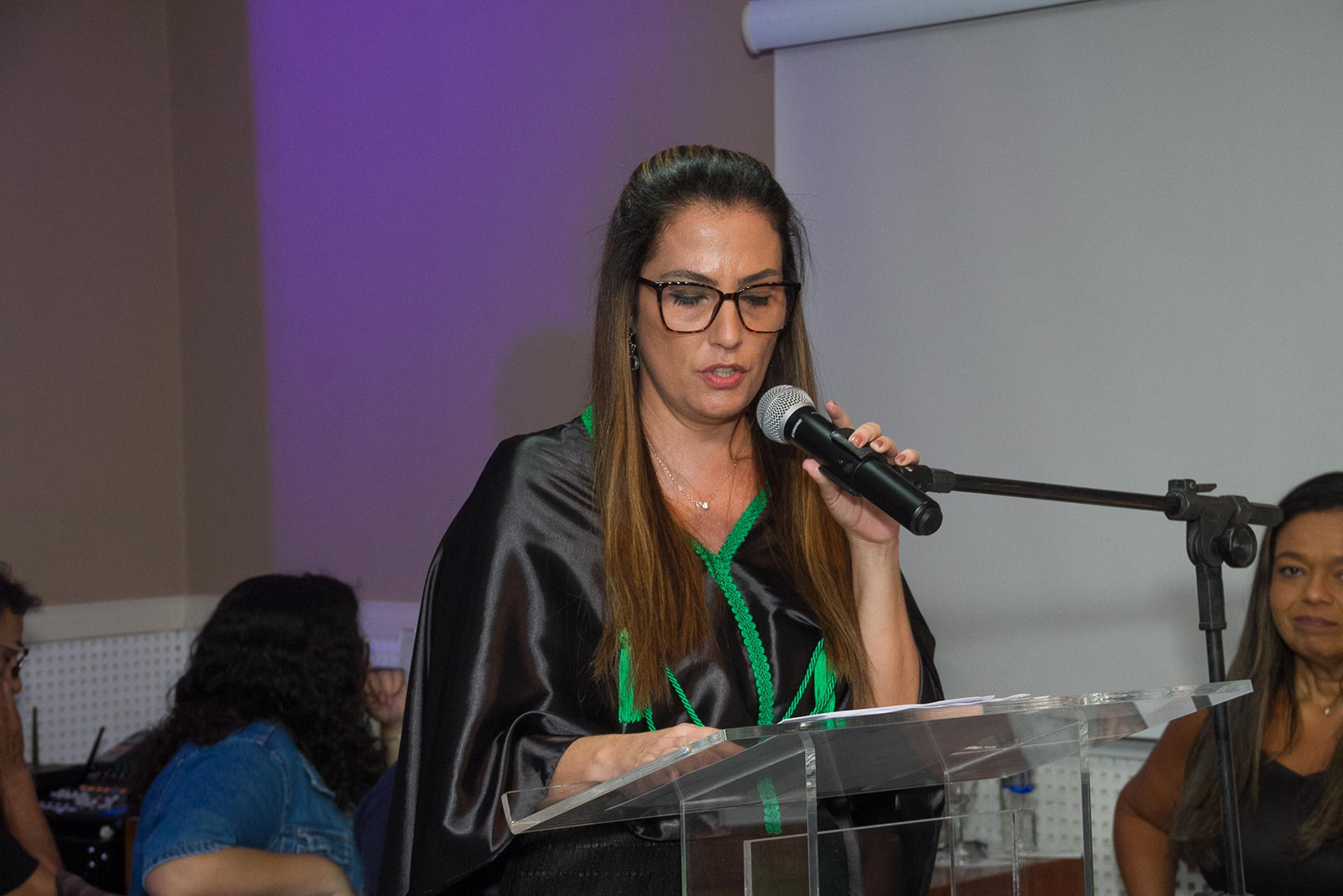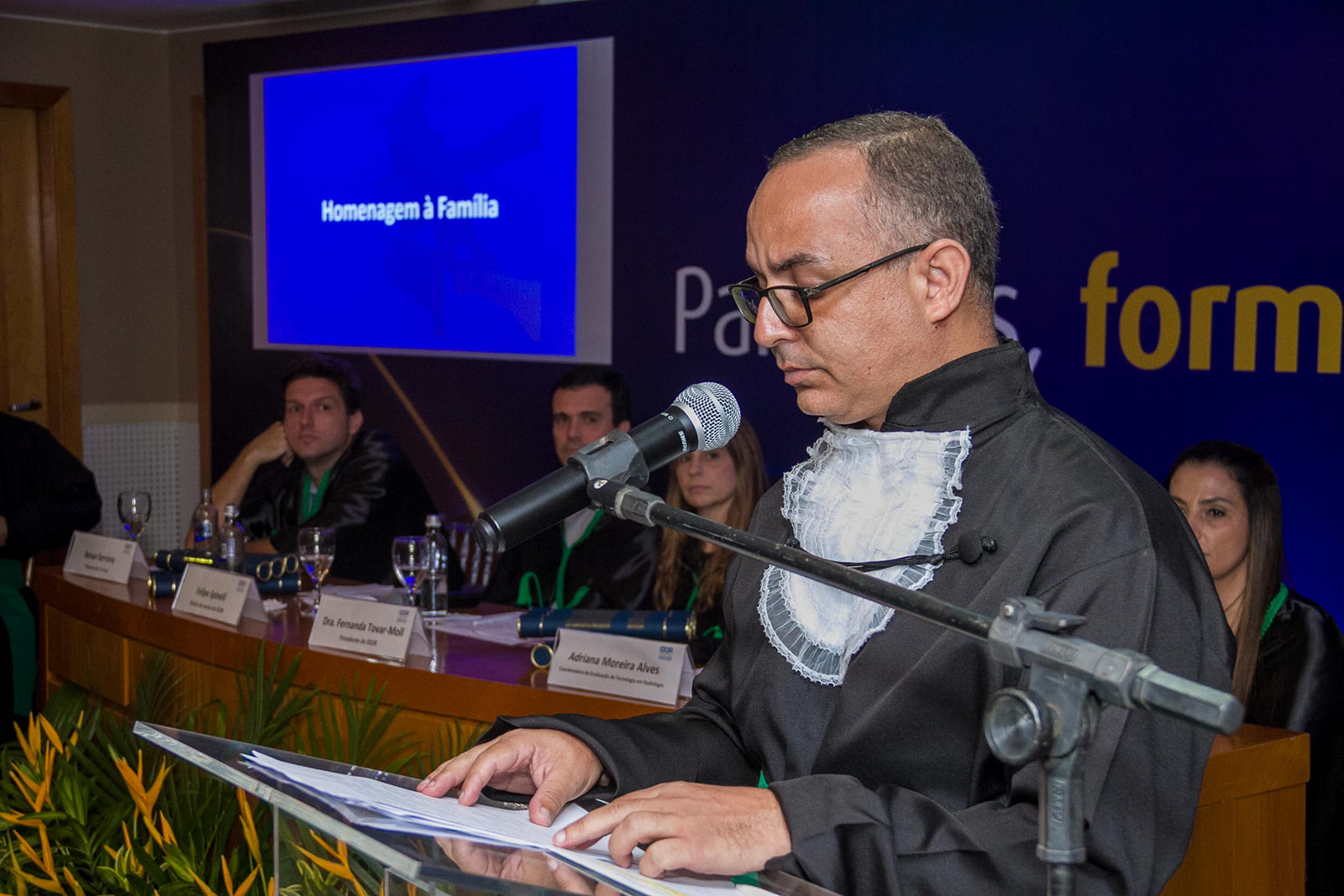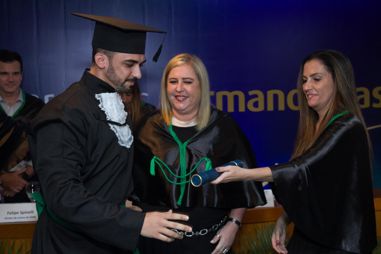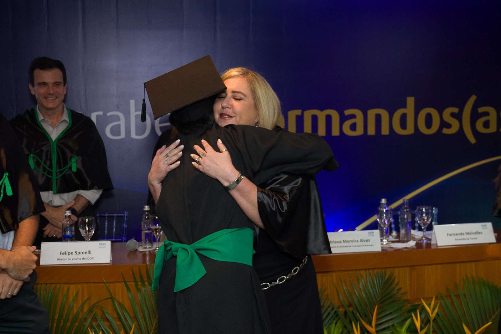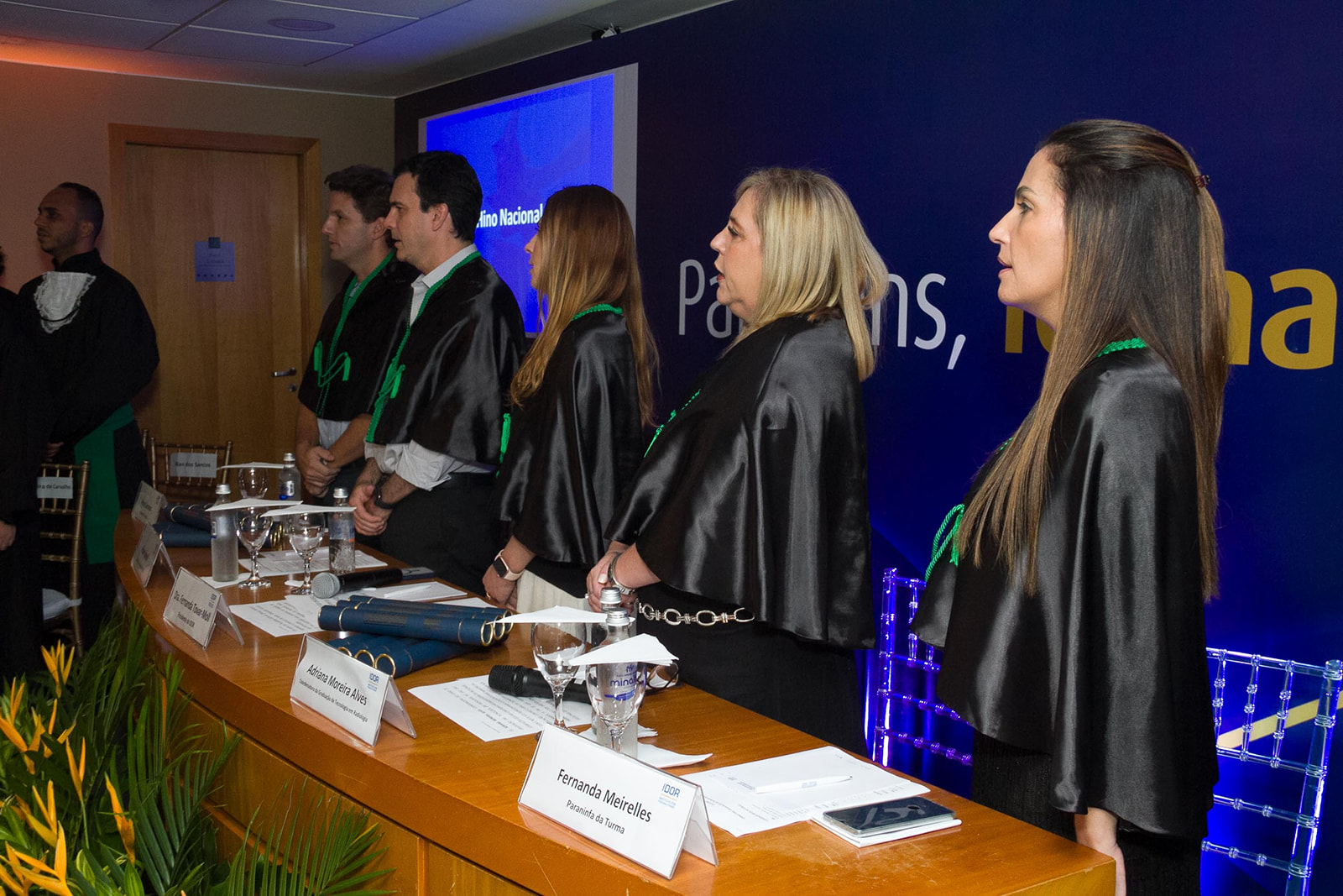Dra. Fernanda Tovar-Moll (Presidente do IDOR) abriu a cerimônia. O evento contou ainda, com a presença de Felipe Spinelli (Diretor de Ensino do IDOR), da coordenadora do curso, Adriana Moreira, que conduziu a imposição de grau com maestria junto da formanda Hemilena Bonutti e dos Patrono (Prof. Renan Serrano) e Paraninfa (Prof. Fernanda Meirelles).