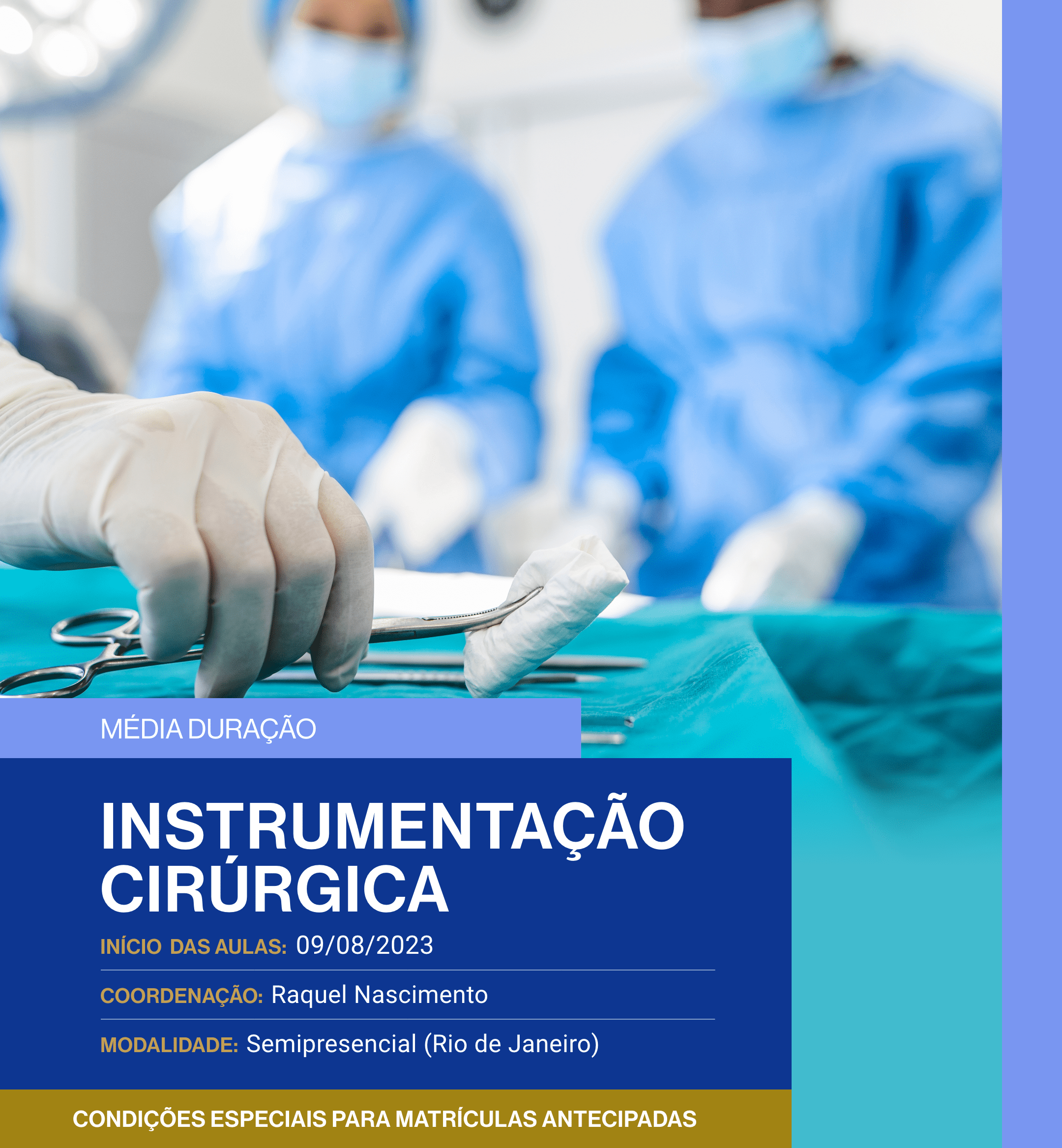 Voltado para técnicos de enfermagem e técnicos de instrumentação cirúrgica, oferece um programa abrangente que aborda todos os aspectos essenciais da instrumentação cirúrgica. Os participantes terão a oportunidade de se aprofundar em tópicos importantes, como anatomia, funcionamento e terminologias relacionadas à instrumentação cirúrgica e aprenderão sobre os equipamentos necessários, técnicas de gravação, limpeza e os cuidados essenciais nesse tipo de cirurgia minimamente invasiva.