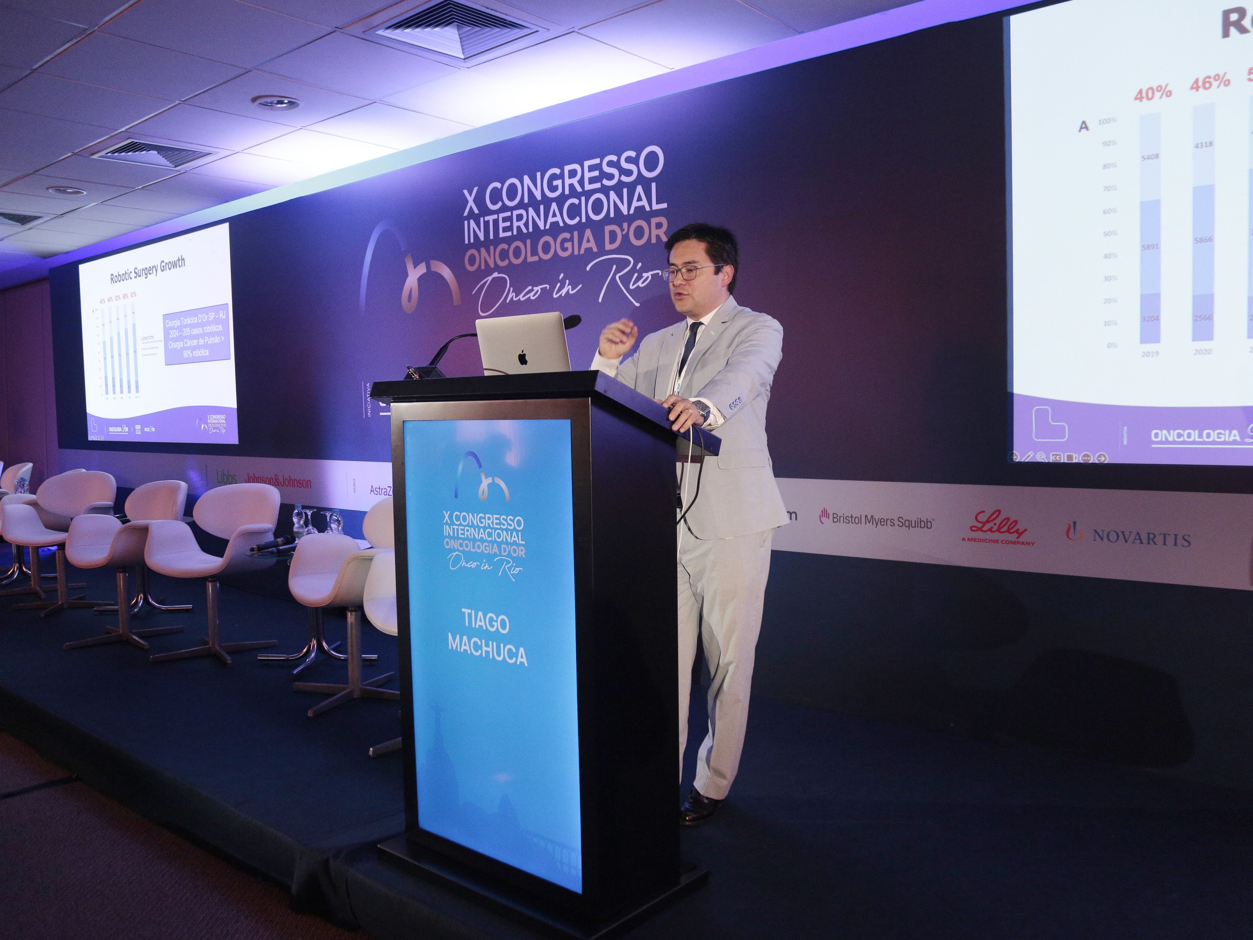 Dra. Clarissa Baldotto, pesquisadora do IDOR, participou de diversas mesas como coordenadora e debatedora. Dra. Laura Testa, pesquisadora do IDOR, falou sobre a endocrinoterapia em pacientes com câncer de mama. Dr. Carlos Domene, pesquisador e coordenador médico do programa de cirurgia robótica IDOR/Rede D’Or, abordou o tópico sobre as aplicações da inteligência artificial na cirurgia oncológica. Dr. Thiago Romano, coordenador médico da UTI oncológica na Rede D’Or e coordenador da pós-graduação de terapia intensiva do IDOR, liderou o módulo de terapia intensiva em oncologia do qual abordou tópicos como infecções oportunistas em pacientes imunocomprometidos e cuidados de alto valor em oncointensivismo.