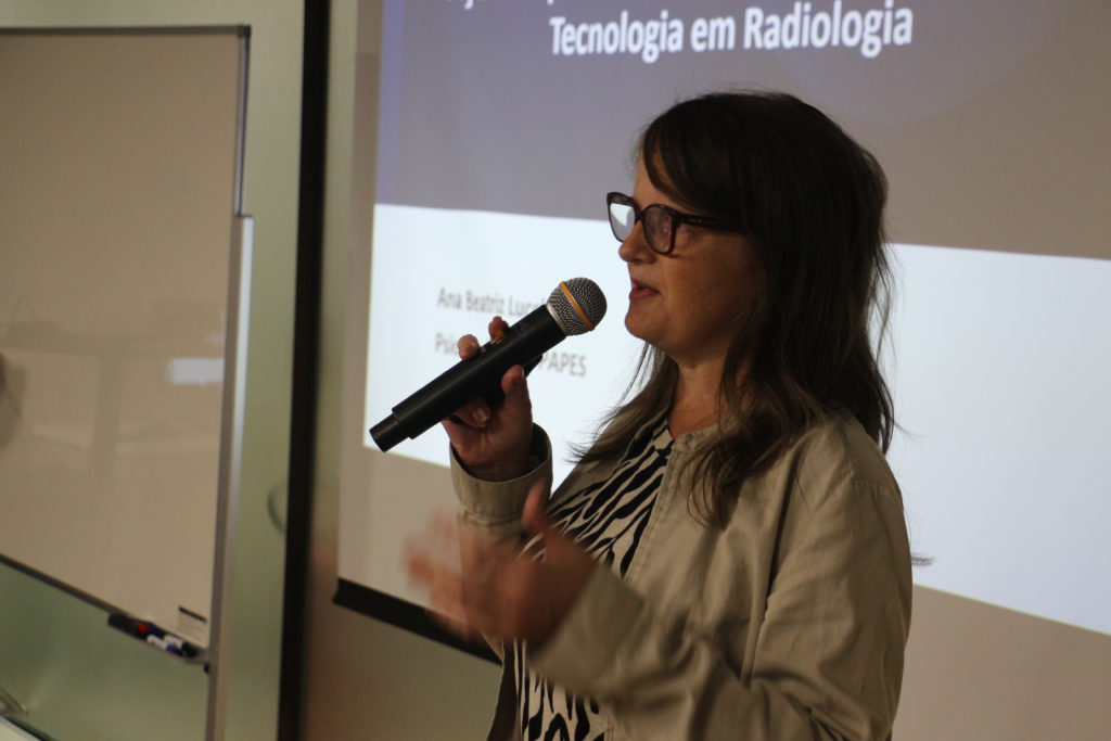 À noite, foi a vez dos alunos de Tecnologia em Radiologia. A coordenação do curso apresentou-se, e Ana Beatriz Lucchese, Psicopedagoga do PAPES (Programa de Apoio Psicopedagógico e Social), conduziu uma palestra sobre “Ações Importantes na Jornada Acadêmica da Tecnologia em Radiologia”, fornecendo orientações para o percurso acadêmico dos novos alunos.