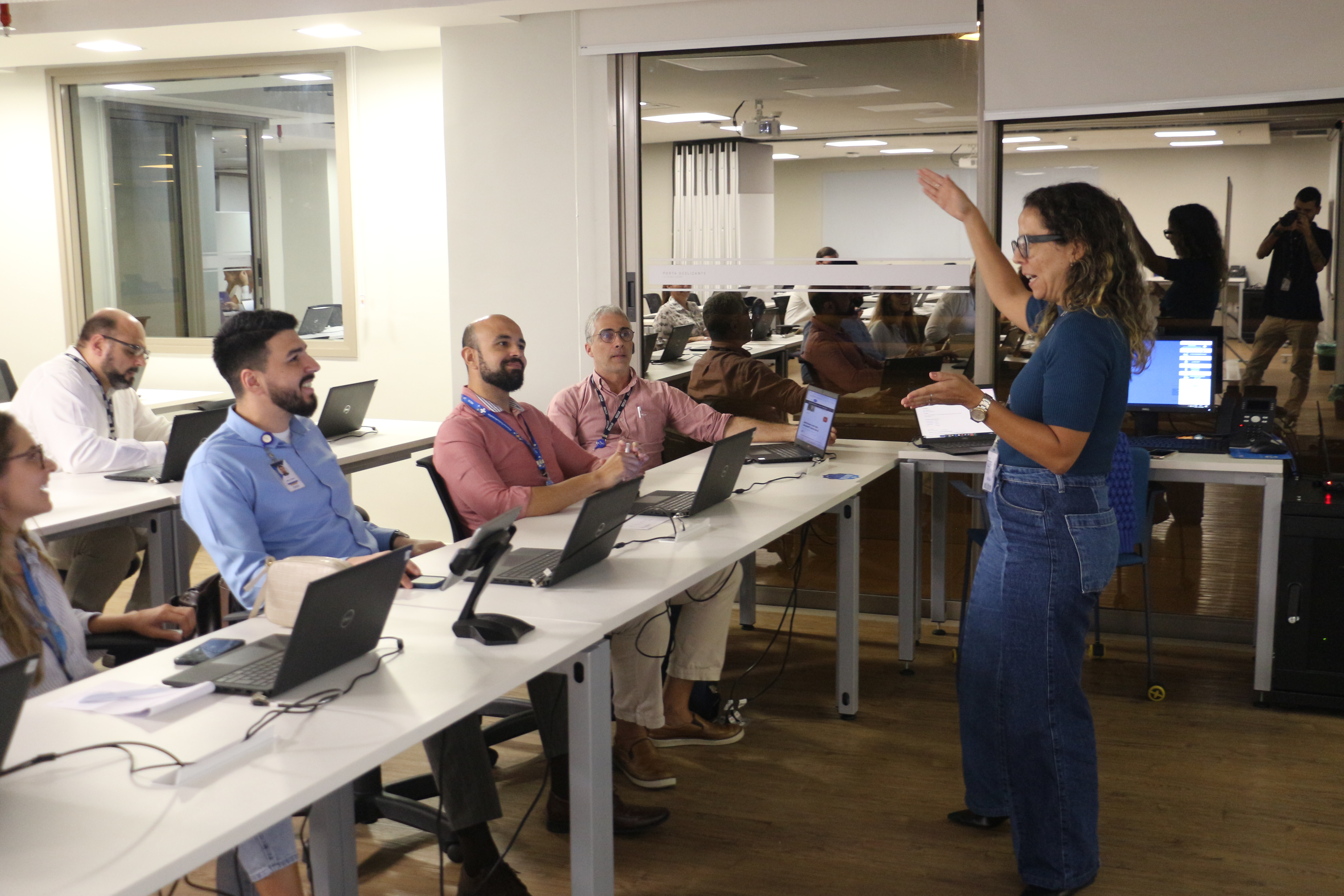 Dra. Renata Carnevale, Coordenadora Adjunta do Programa de Estágio Acadêmico do IDOR, liderou uma sessão sobre o uso de podcasts na educação, destacando como essa ferramenta pode enriquecer o processo de ensino. Após a palestra, os participantes tiveram a oportunidade de criar um podcast colaborativo que complementou o que foi discutido. Patricia Alves, Coordenadora de EaD do IDOR, falou sobre o uso da inteligência artificial na produção de atividades de ensino, explorando como essa tecnologia pode ser integrada no ambiente educacional para criar experiências de aprendizagem mais personalizadas.
