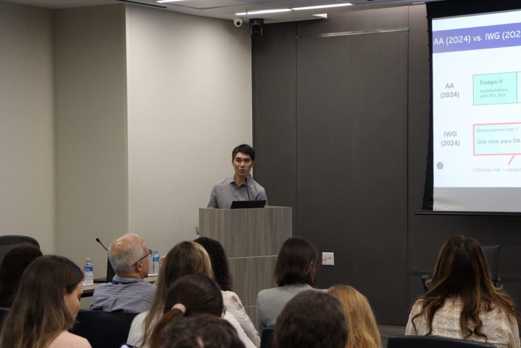 Durante o simpósio, o Dr. Gabriel de Freitas participou da mesa sobre os significados clínicos dos biomarcadores plasmáticos, enquanto o Dr. Felipe Sudo trouxe reflexões sobre o diagnóstico neuropsicológico e os desafios terapêuticos relacionados à fase precoce da doença. Já a Dra. Fernanda Tovar-Moll participou da abertura do encontro, destacando a importância da colaboração científica para o avanço na compreensão e no enfrentamento do Alzheimer.