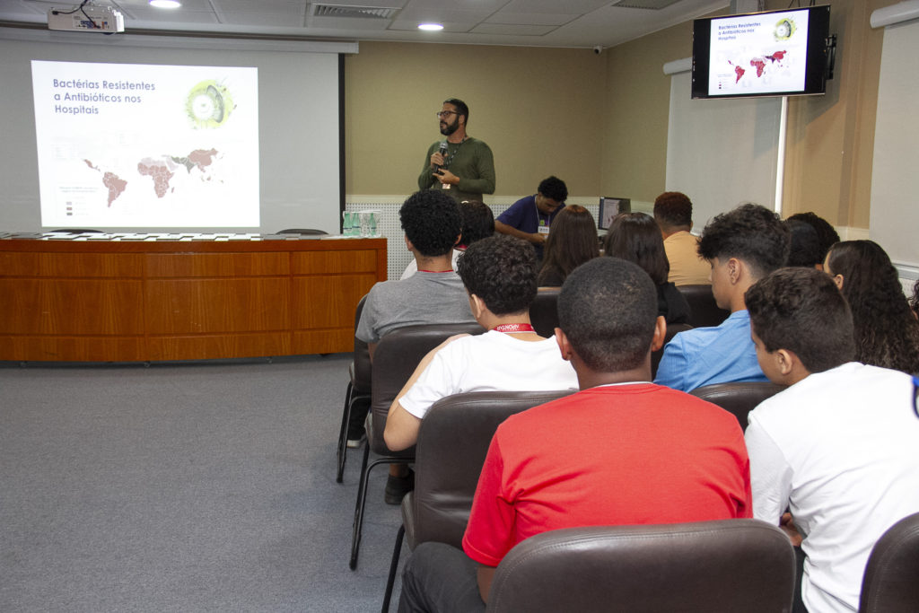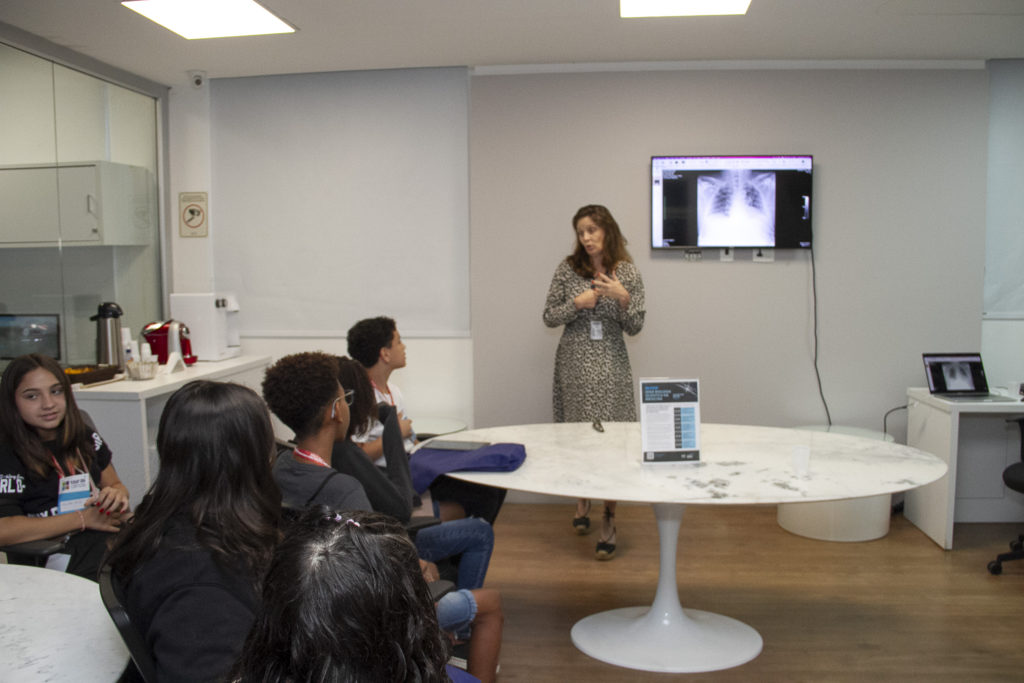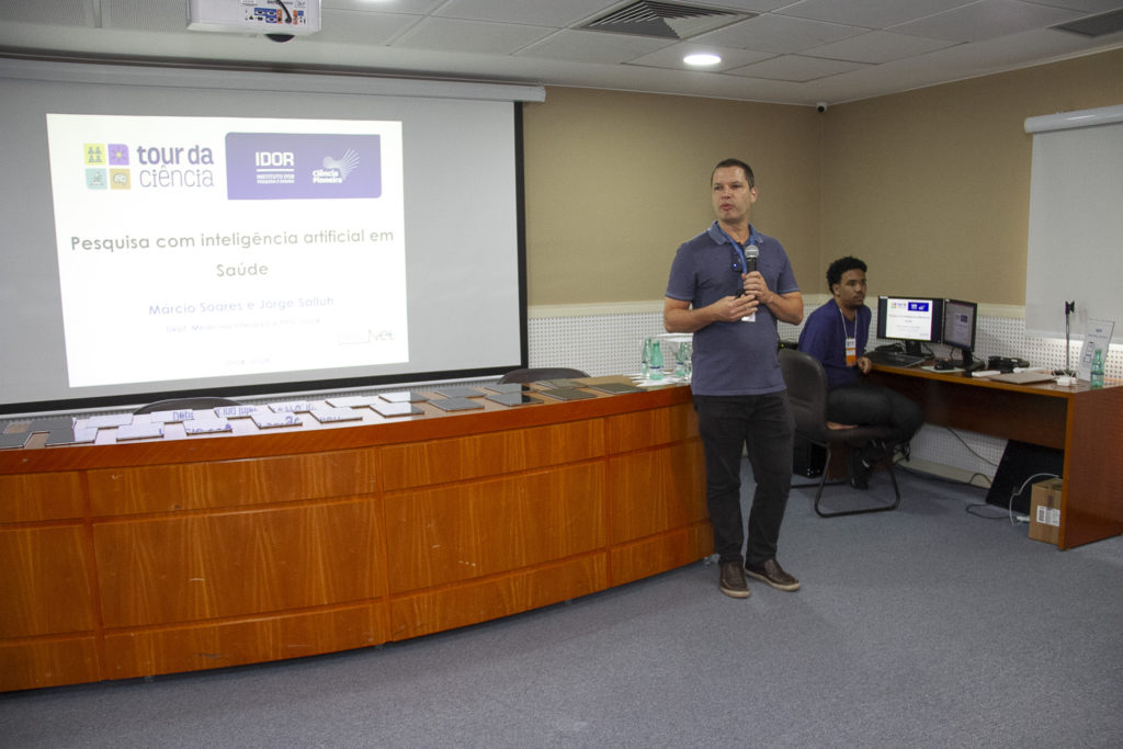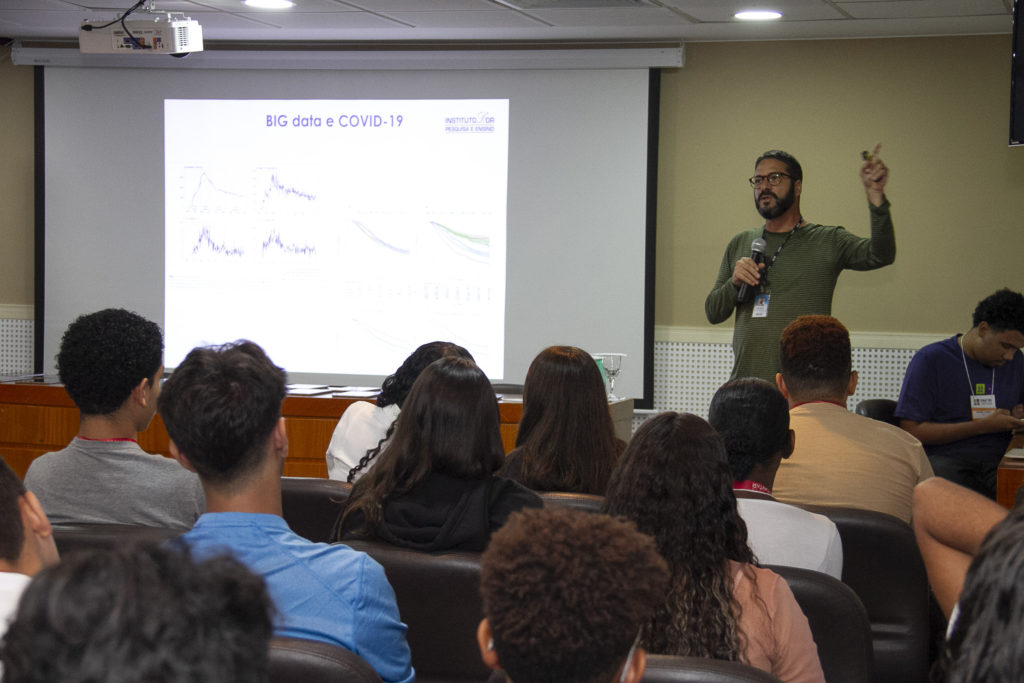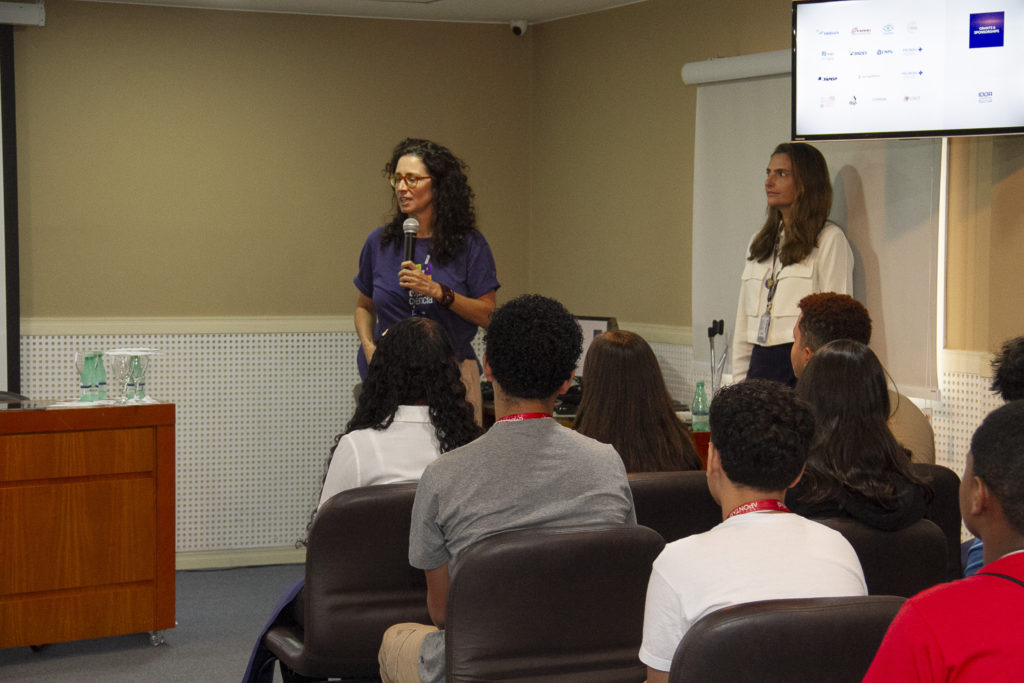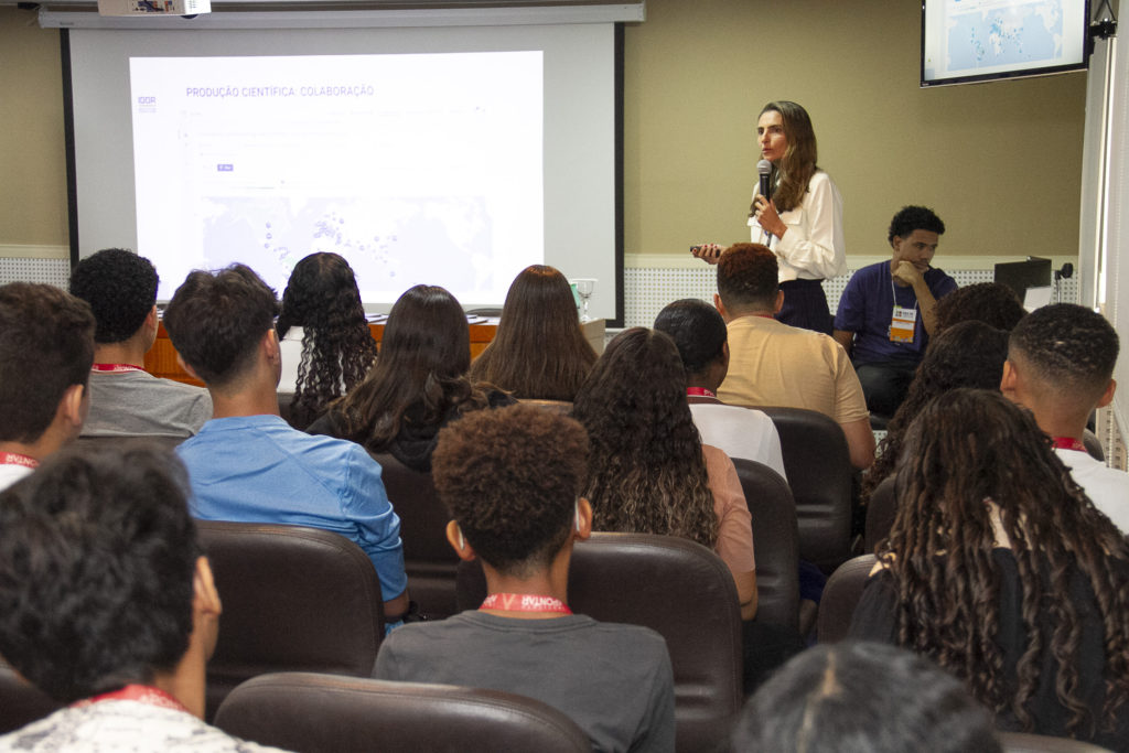 Na abertura do evento, tivemos a Dra. Erika Rodrigues, pesquisadora do IDOR e coordenadora do evento, realizando uma apresentação sobre o instituto, destacando nossa abrangência nacional, nossas linhas de pesquisas desenvolvidas e a participação em estudos internacionais, como por exemplo, nossa atuação em demonstrar os danos neuronais causados pelo vírus Zika e o recrutamento de voluntários para a vacina contra a Covid-19. Além disso, também participou Roberta Marques, diretora executiva da Ciência Pioneira – iniciativa de fomento à ciência de fronteira e à educação científica, parceira do IDOR no evento. Roberta apresentou a Ciência Pioneira e detalhou suas ações educacionais.