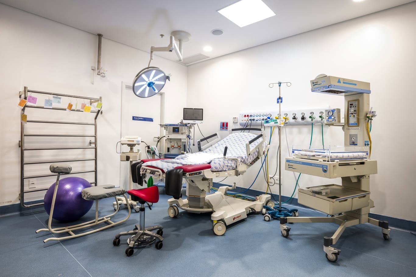 O Centro Obstétrico conta com cinco salas, sendo três destinadas a cesarianas e duas Delivery Rooms, especialmente preparadas para partos naturais, com tecnologia moderna e ambiente acolhedor. Toda a estrutura promove privacidade e conforto, com o chamado “Espaço Nascer” permitindo que familiares acompanhem o momento pelo visor externo.