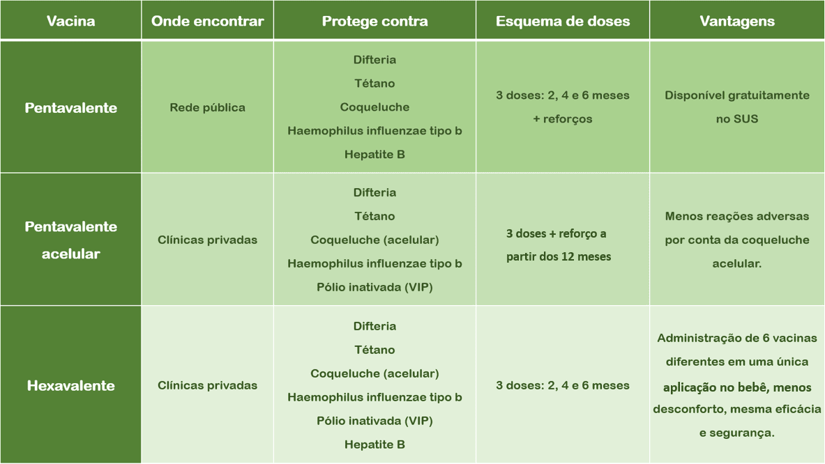 A escolha entre uma ou outra deve ser feita com orientação do pediatra, considerando o calendário vacinal da criança e as recomendações oficiais.