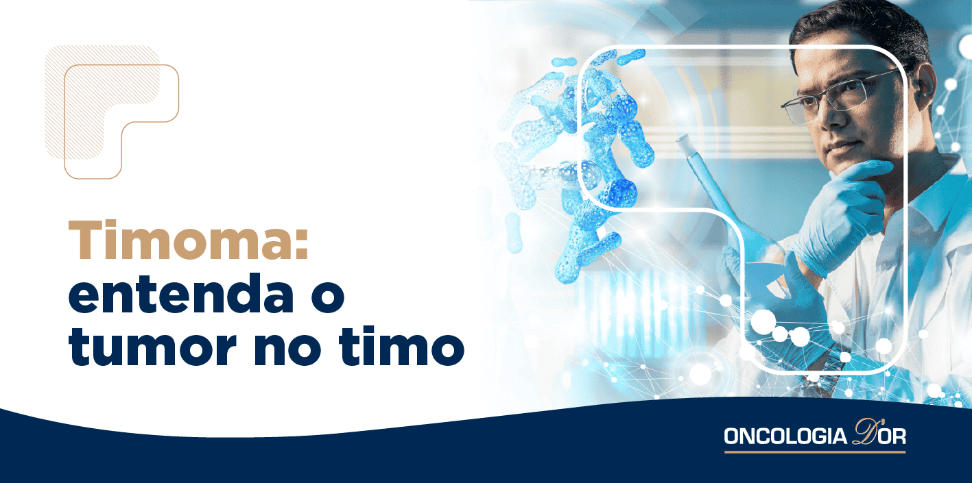 O timoma é um tumor raro que se origina no timo, uma glândula localizada no mediastino anterior, atrás do osso esterno, no peito. Embora muitos timomas sejam considerados de crescimento lento e tenham baixo potencial de disseminação, alguns podem apresentar comportamento agressivo, invadindo estruturas adjacentes ou formando metástases. Quando o tumor apresenta características mais agressivas, é denominado carcinoma tímico.