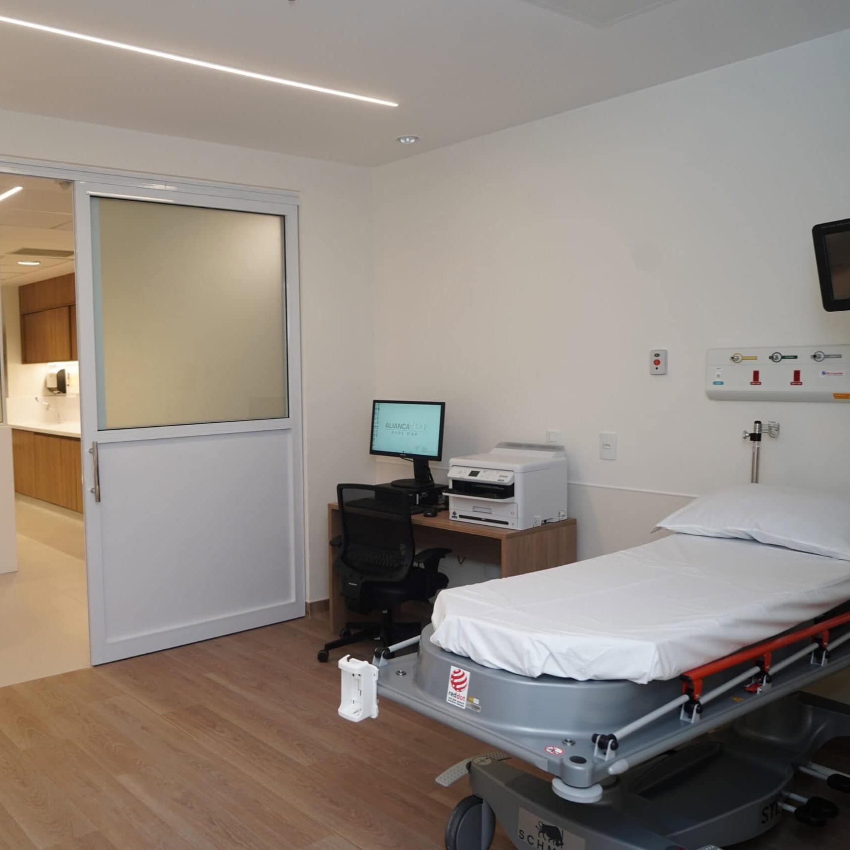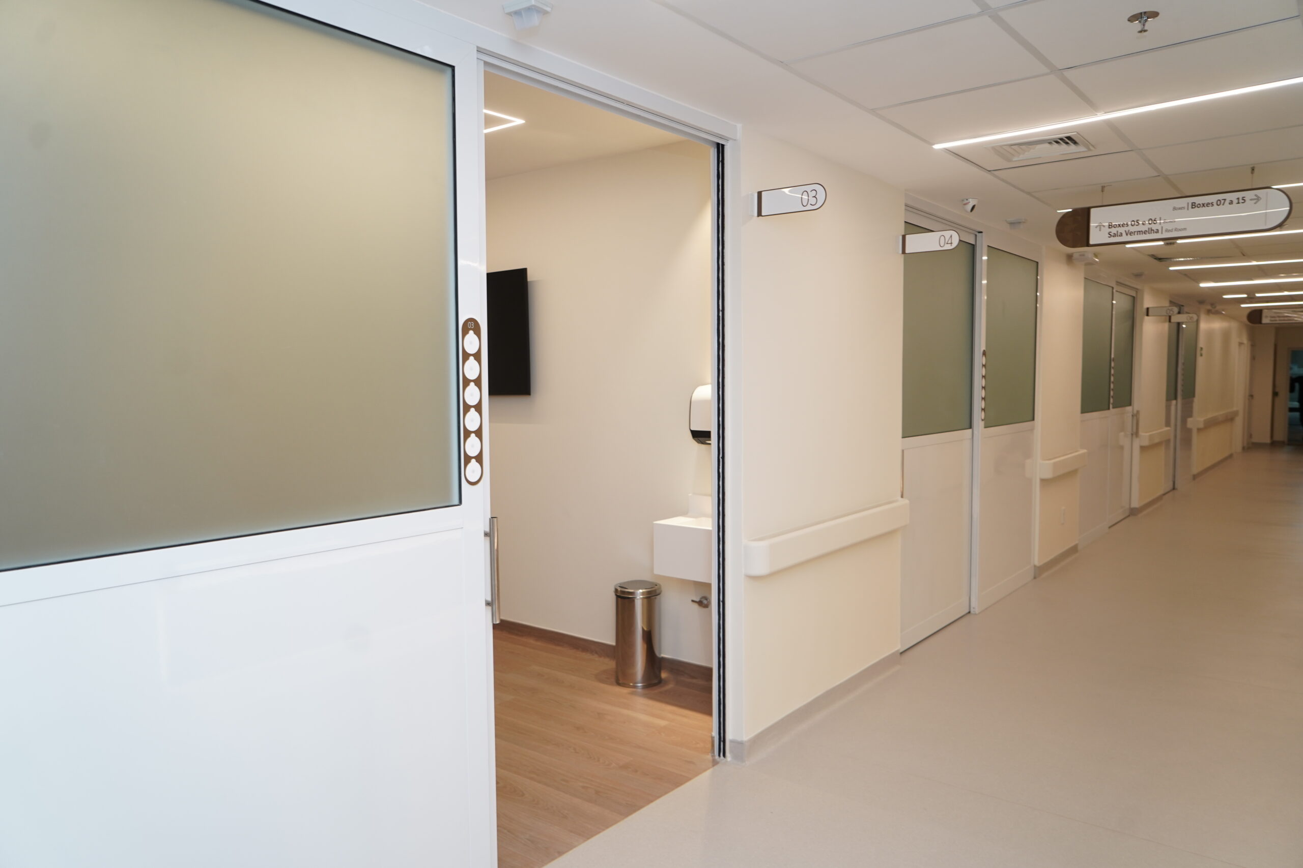 O modelo Smart Track, desenvolvido pela Rede D’Or, garante agilidade no atendimento, com boxes individuais e espaço para acompanhantes.