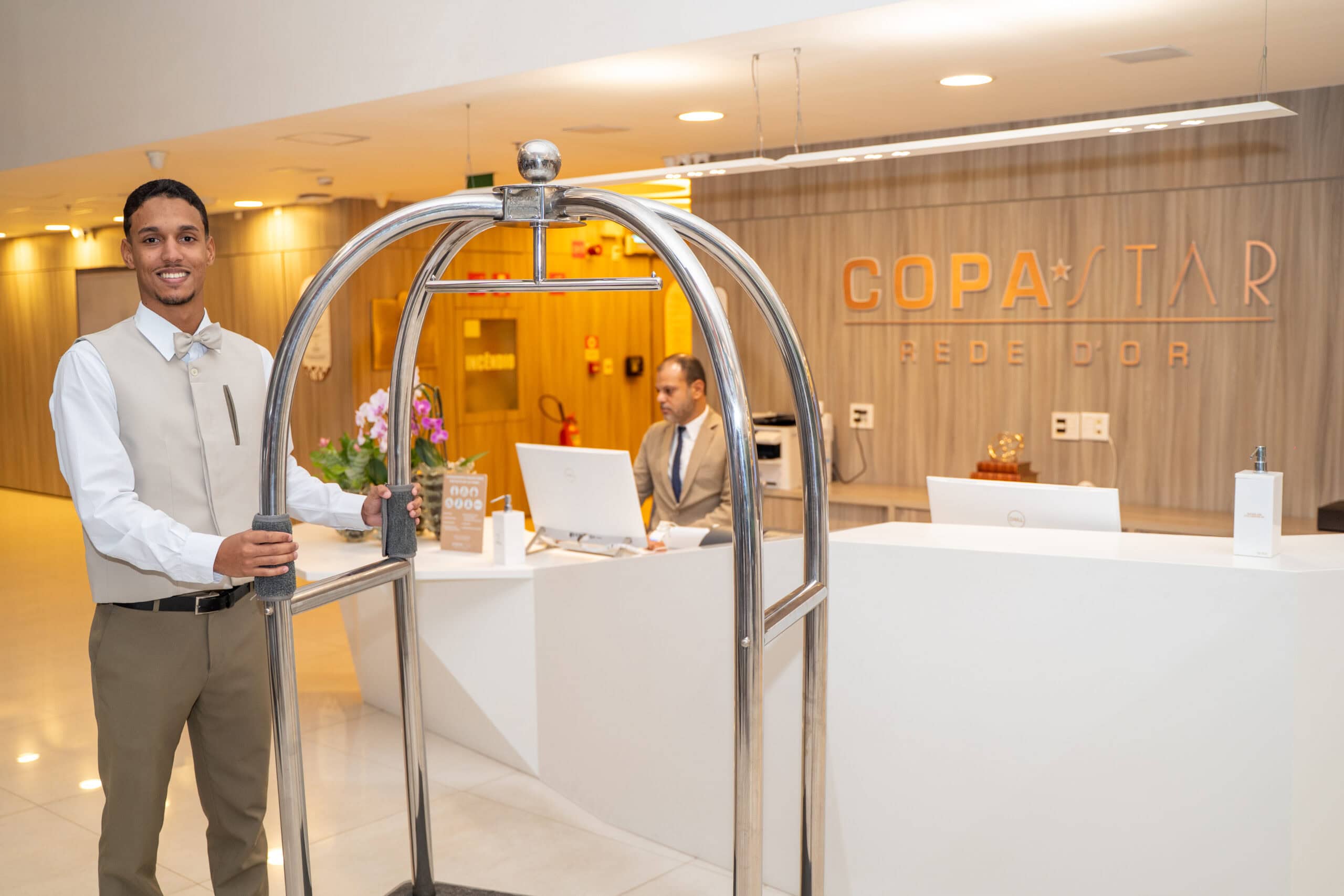 O serviço de Concierge do Copa Star oferece um atendimento exclusivo para auxiliar pacientes e acompanhantes no agendamento de exames, internações e orientações durante toda a jornada hospitalar.