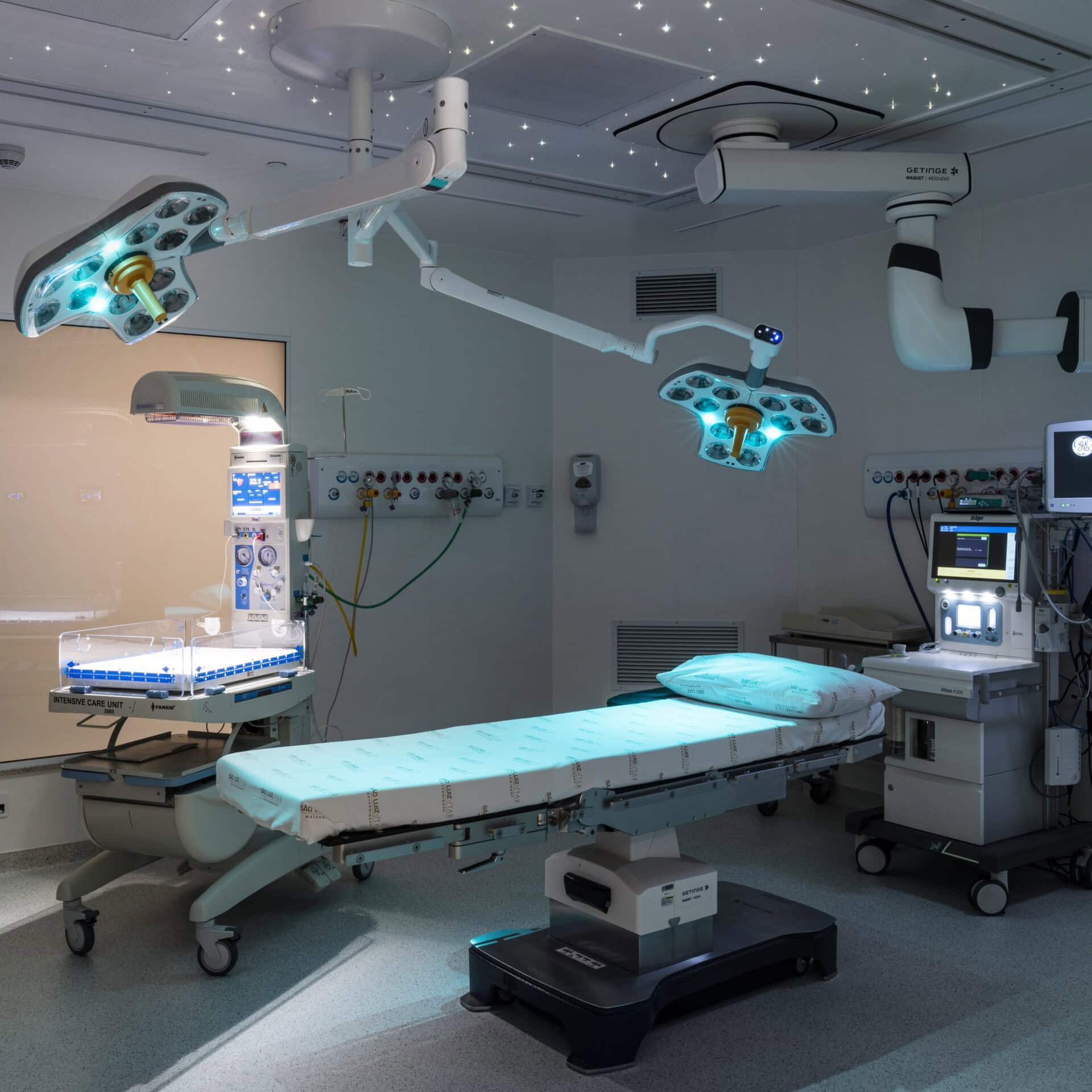 As salas de parto são projetadas para serem ambientes confortáveis e aconchegantes. O objetivo é proporcionar o máximo acolhimento aos pais durante o trabalho de parto e oferecer modernos recursos para a equipe médica, garantindo a segurança necessária durante o nascimento.