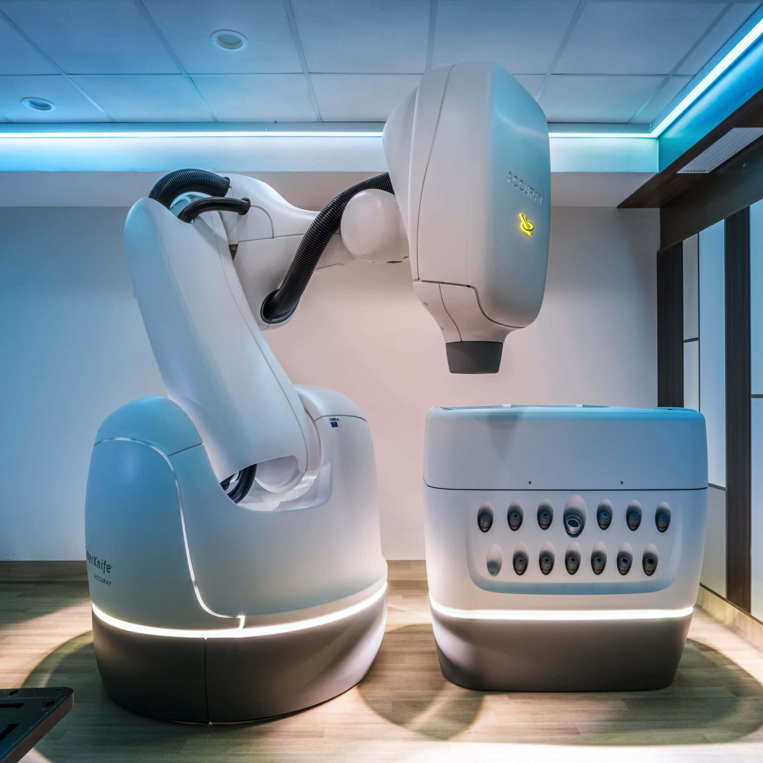 Além disso, conta com um andar exclusivo para tratamento com radioterapia. O CyberKnife é primeiro equipamento do Brasil de radiocirurgia para procedimentos intra e extracranianos, capaz de direcionar alta concentração de radiação em pequenos pontos, proporcionando ao paciente um tratamento com maior precisão, menos efeitos colaterais e no menor tempo. O Tomotherapy é um instrumento que também oferece tratamento menos invasivo e mais assertivo, combinando a radiação com exame de imagem tomográfica.