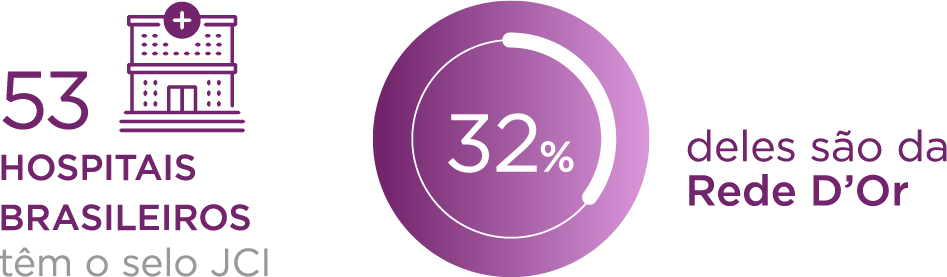 Em dezembro de 2023, o Brasil possuía 53 hospitais acreditado pela metodologia Joint Commission International (JCI). Deste total, 17 são da Rede D’Or, ou seja, 32%. A metodologia da Organização Nacional de Acreditação registrava 414 hospitais acreditados, sendo 8% pertencentes ao nosso Grupo. Ainda temos oito unidades acreditadas como Diamante pela metodologia Qmentum Internation; uma unidade acreditada pela National Integrated Acreditation for Healthcare Organizations (NIAHO) e uma unidade acreditada pela Agencia de Calidad Sanitaria de Andalucía (ACSA). O hospital Memorial Arthur Ramos de Maceió foi o primeiro hospital da América Latina acreditado ACSA nível excelente.