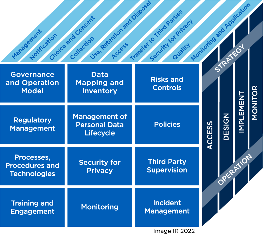 The framework elements provide a pragmatic structure for organizing the management and oversight necessary to mitigate subject exposure to privacy risks. They are distributed among 12 macro-domains that address several aspects related to data protection controls and good practices and that help ensure compliance with applicable privacy laws and regulations.