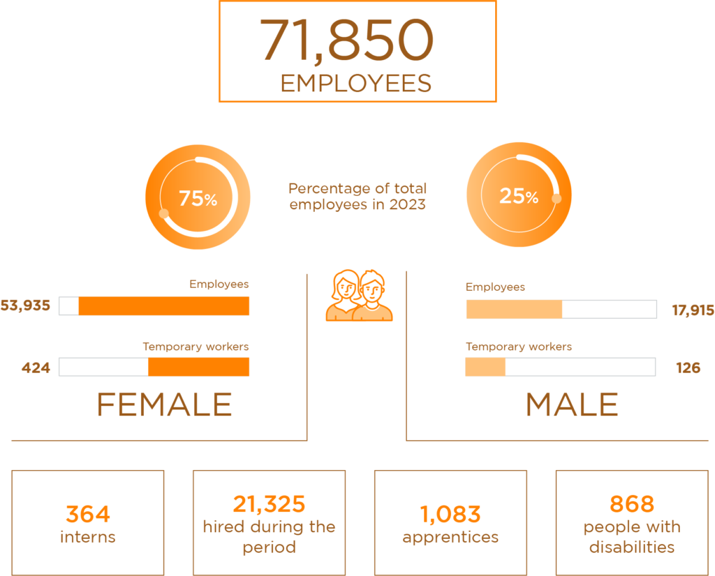 To maintain continuous improvement and deepen our understanding of our people, promoting the creation of a better work environment, we launched a personal information update survey in 2023, including questions such as gender, race, and ethnicity data. This initiative aims to promote a sense of respect and belonging for all individuals [GRI 3-3].