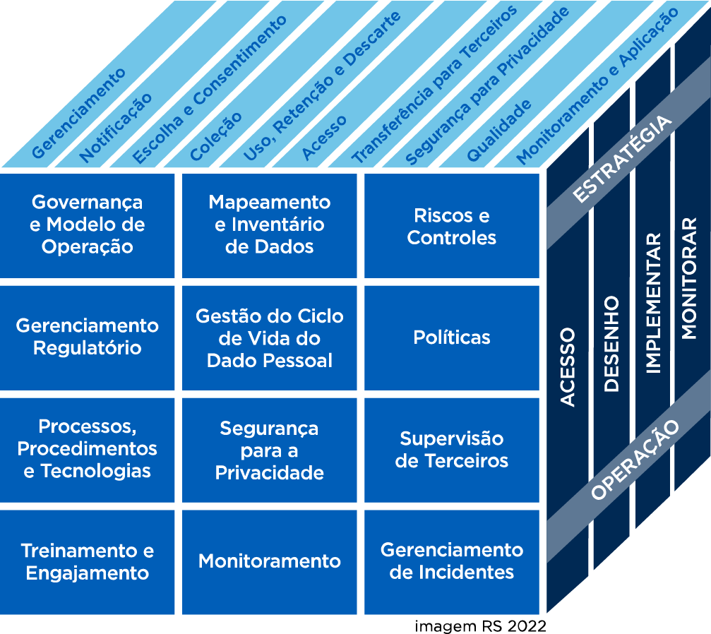 O nosso Programa de Privacidade foi desenvolvido com base no National Institute Of Standards and Technology (NIST) Privacy Framework e no Guia de Elaboração de Programa de Governança em Privacidade, disponibilizado pelo Ministério da Economia, em demonstração ao nosso respeito aos direitos de liberdade, imagem, honra e privacidade dos indivíduos e da sociedade em geral. O Programa abrange todas as empresas do grupo (Rede D’Or, Oncologia D’Or, GTS, Richet e IDOR) e norteia, por meio dos frameworks citados anteriormente, as principais medidas, objetivos, metas e envolvimento de stakeholders, processos estes intrínsecos desses frameworks os quais embasamos este Programa [GRI 3-3].
